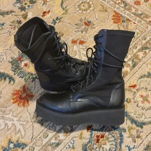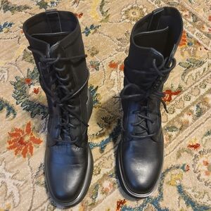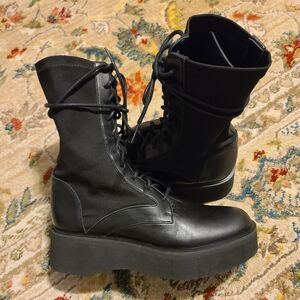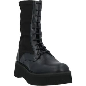 Black Jade leather ankle boots, panelled design, round toe, front lace-up fastening, ankle-length, platform sole, heel height 5 cm