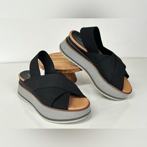 Black and gray sling back platform sandals from PALOMA BARCELO, size 36/5.5-6US.