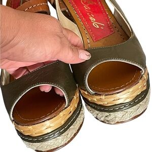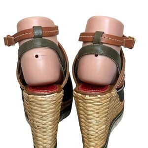 PALOMA BARCELO Platform Leather Wicker Wedge Sandals 37 Olive/Brown Ankle Strap