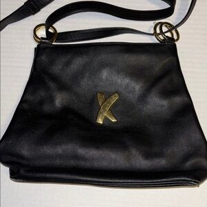 PALOMA PICASSO BLACK LEATHER SHOULDER BAG GOLD TONE X LOGO IN FRONT GORGEOUS