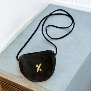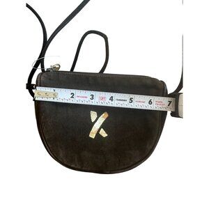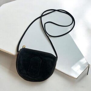 This vintage Paloma Picasso crossbody bag features elegant brown suede, perfect for adding a touch of sophistication to any outfit. Its compact design and timeless style make it an essential accessory for any fashion lover. Good condition with wear from use as shown.
