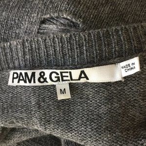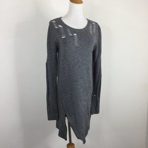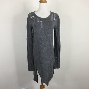 PAM & GELA Gray Wool Cashmere Knit Blend Distressed Asym Zip Hem Sweater Dress