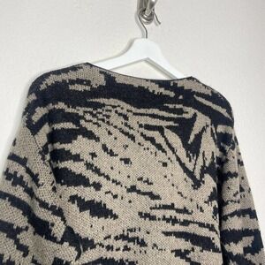 Very cool cardigan by Pam & Gela. Animal print in a tiger type pattern in shades of brown and black. Slightly oversized fit with two pockets. Five tortoise shell buttons. Fun piece! All measurements are approximate, taken flat and closed.