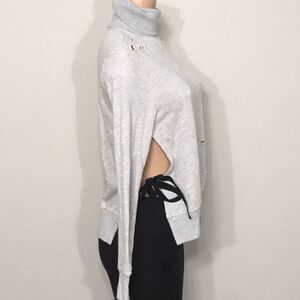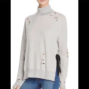 Adorable destroyed turtleneck sweatshirt with a split side and tie.