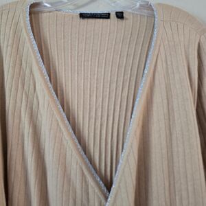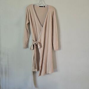 PAMELA DENNIS Beige Ribbed Wrap Dress Size Medium