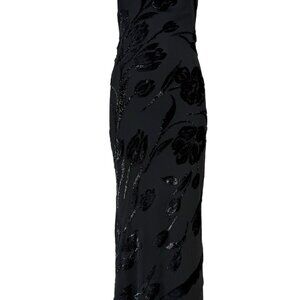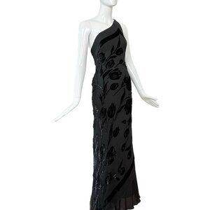 PAMELA DENNIS Vintage Black Silk Asymmetrical Evening Gown Maxi Dress Floral