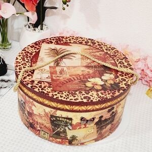PAMELA Gladding Cheeta/postcard Red Orange Hat Box