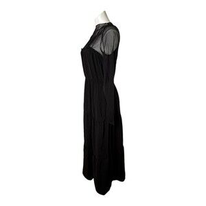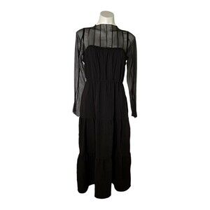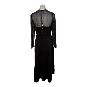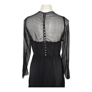 PAMELA LOVE Sheer Maxi Tiered Dress Black Long Sleeves Wednesday Goth Emo Size L