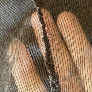 -Condition: Gently used, no stains or holes. Due to the delicate structure, there is a stressed seam on the sleeve [pictured] and a slight break in the neck seam. Please review pictures carefully and ask questions before offers/purchase. No belt included.
