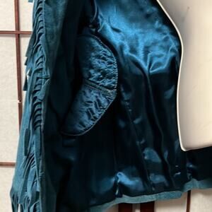 PAMELA MC COY TURQUOISE FRINGE 100% LEATHER JACKET SIZE S