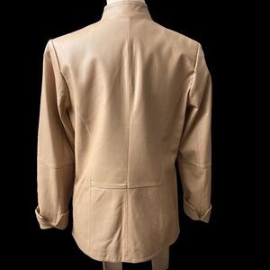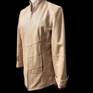 This leather is in exceptional condition. It says extra small, but I’m a size 6 and it fits quite nicely. The interior has no rips or tears. The silver zipper up the front works just as it should.