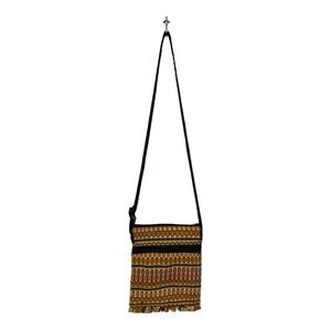 WOVEN TRAVEL BAGS HANDMADE IN GUATEMALA. THESE CROSS-BODY BAGS FEATURE A ZIPPER POCKET IN THE FRONT, ON TOP, AND ADJUSTABLE STRAPS. CHOOSE YOUR LENGTH OF STRAP BY TYING A KNOT THROUGH THE LOOP!
