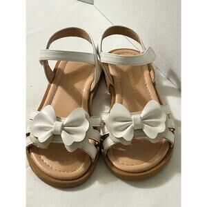 PANDANINJIA Girls White Sandals-Sparkle Bow CLOVER Design-Worn Once-Size 12