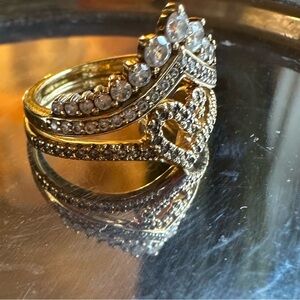 PANDORA 14K Gold Plated Timeless Heart with Tiara Ring Set