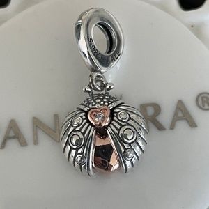 PANDORA 2022 CLUB CHARM ROSE LADYBIRD & HEART DANGLE CHARM