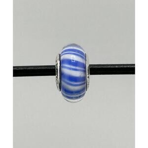 PANDORA " Blue Candy Stripes" #790611 Blue Murano Glass SS Bead Retired