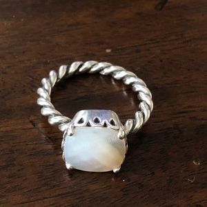 Pandora Sincerity Twisted Sterling Silver Mother Of Pearl Cushion Cut Ring
