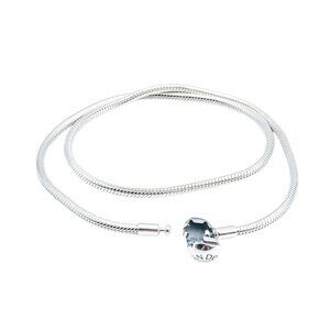 Authentic PANDORA Moments 17.7-Inch Smooth Sterling Silver Snake Chain Necklace With Pandora Clasp - 590742-HV-N. A sophisticated staple for any Pandora collection, this sleek snake chain necklace with barrel clasp opens endless possibilities to showcase your favorite Pandora Moments charms.