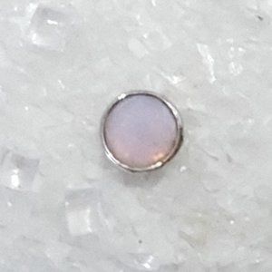 The iridescent color of opalescent pink crystal is linked to love, care and nurture. Add October's birthstone to a floating locket for a feminine expression.
