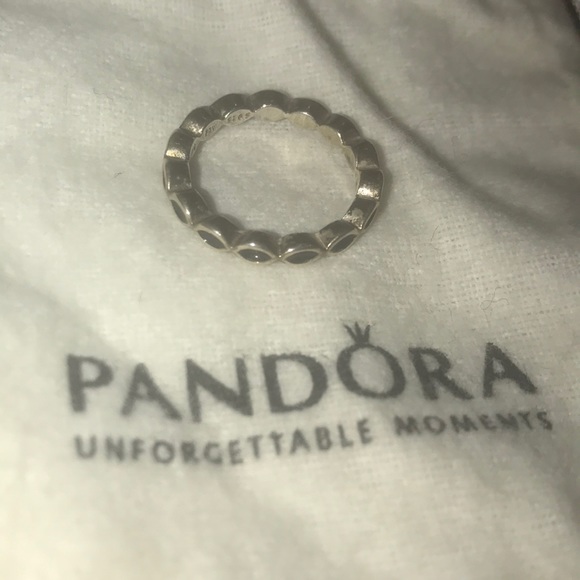 BEAUTIFUL PANDORA BLACK AND SILVER ETERNITY RING!!! SIZE 5 😍