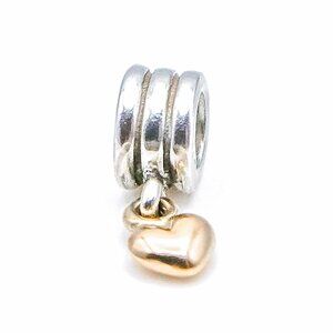 Authentic PANDORA Dangling Heart Charm 925 ALE Sterling Silver Bead With 14K Gold Heart Dangle 790173 - Retired.