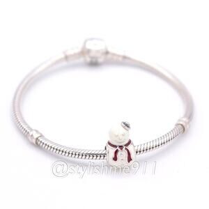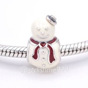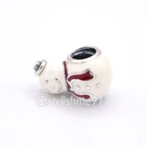 Retired Sterling Silver Happy Snowman Winter Christmas Bead with White and Red Enamel - 791406ENMX