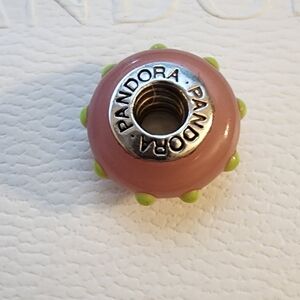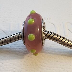 Authentic PANDORA Retired Sterling Silver & Murano Glass Seeing Spots Pink & Lime Green