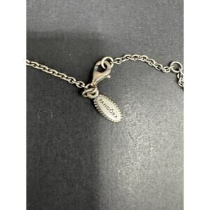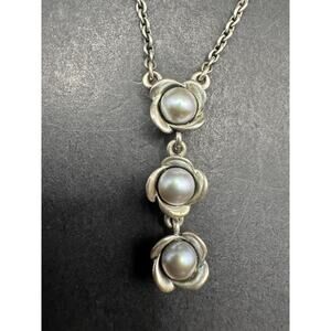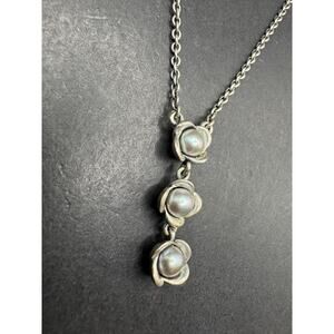PANDORA Signed Gray Pearl Three Wishes Flower Pendant Sterling Silver Necklace