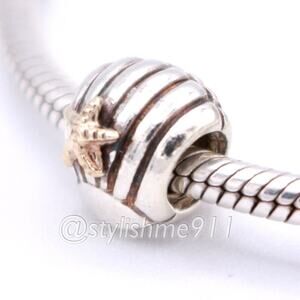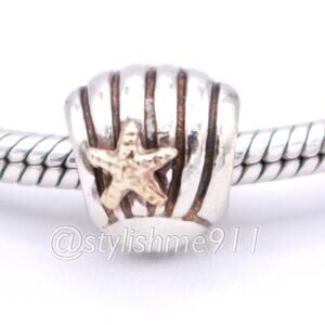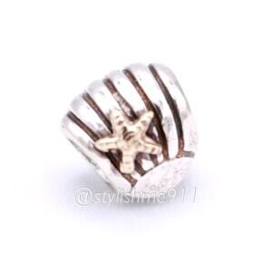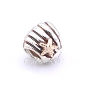 Authentic PANDORA Retired Sterling Silver with 14K Gold Sea Shell with Starfish Nautical Bead, 925 ALE Stamp