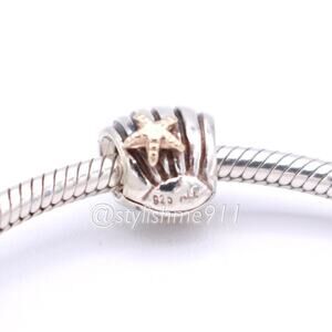 Authentic PANDORA Retired Sterling Silver with 14K Gold Sea Shell with Starfish Nautical Bead, 925 ALE Stamp