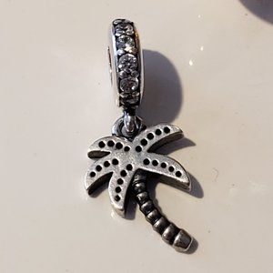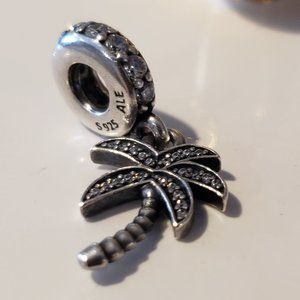 PANDORA Sparkling Palm Tree Silver Dangle Travel Charm with clear CZ, RETIRED