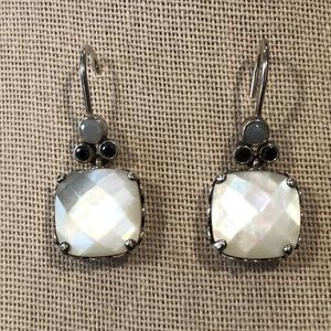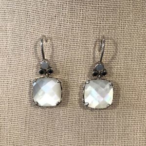 PANDORA Sterling Silver Drop Dangle Mother of Pearl Cushion Cut Earrings