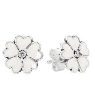 PANDORA White Primrose Meadow Stud CZ Earrings w Dust Bag NWT