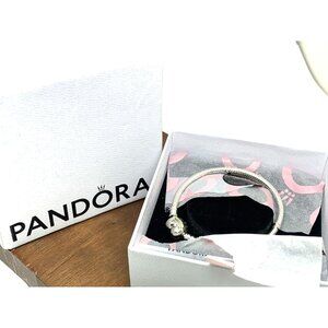 PANDORA Women's Bracelet Heart .925 Sterling Silver With Box 6'' Wrist Size (AY10105)