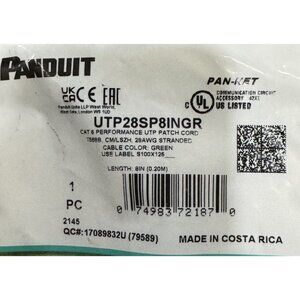 PANDUIT 1 pc Green UTP28SP8IN Copper Patch Cord Category 6 Performance