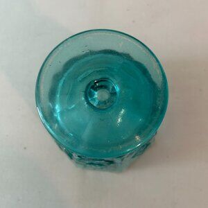 PANELED BOWL AQUA GLASS COMPOTE GRAPES AND LEAVES DESIGN