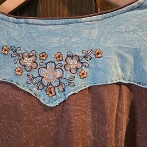 PANHANDLE SLIM Cactus Brown and Blue Embroidered Blouse N1001