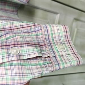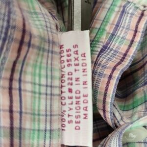 Panhandle Slim Western Button Down Pink/Purple/Green Paid Top, Size Medium. This Top is Perfect. The fabric is a nice thicker, good weight fabric that you can feel the quality!! The colors are so pretty and classic!!