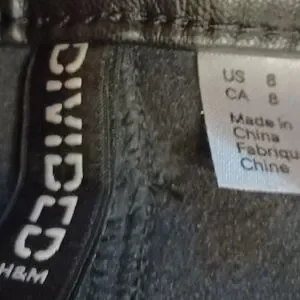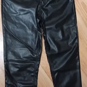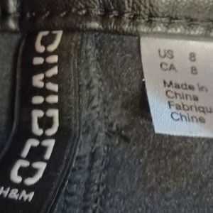 Black vinyl pants with pockets, zips, and buttons, size 6 from Divided H&M