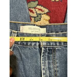 Upgrade your wardrobe with these Levi's 550 blue relaxed fit jeans. These pre-owned denim pants feature a zip and button closure, 5-pocket design, and a 32-inch inseam. The waist size is 38 inches, making it perfect for a regular-size fit. Made of high-quality cotton fabric, these jeans are comfortable to wear and can be washed in medium water temperature.