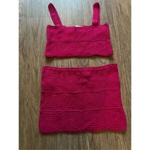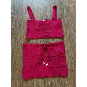 PAOLA BERNARDI Lana crochet Square-Neck Crochet Top and Mini Skirt Set Sz M NWT