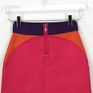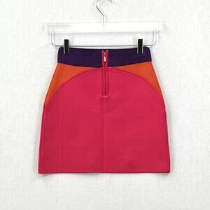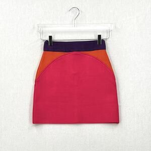 PAOLA BERNARDI Renata Mini Skirt Womens Pink Purple Colorblock Stretch Knit NEW