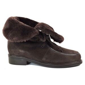 PAOLA FABIANI 🇮🇹 WOMEN'S BROWN SOFT SUEDE & LAMB FUR COMFORT WINTER BOOTIE