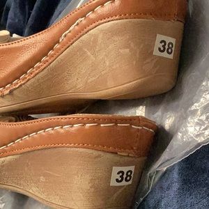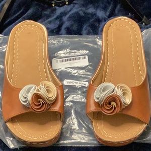 PAOTMBU - Brown Rose Appliqué Wedge Slide - size 7 (38) - new