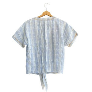 PAPARAZZI Crop Boho Top Women’s M Plaid Embroidered Knot Front Short Sleeve