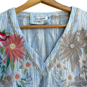 PAPARAZZI Crop Boho Top Women’s M Plaid Embroidered Knot Front Short Sleeve.