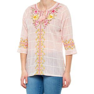 PAPARAZZI Embroidered Blouse with Tassels - 3/4 Sleeve - Medium