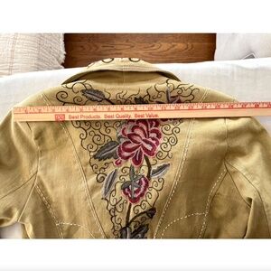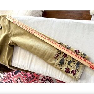 left front. See Last Pic. They're hard to see because of the embroidery.). Color is a kind of light olive green/tan.