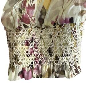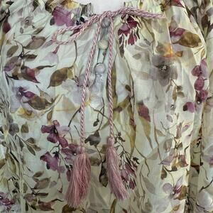 PAPARAZZI FLORAL LONG SMOCKED SLEEVE PEASANT TOP Cottagecore Bohemian Hippie S