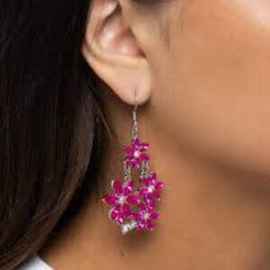 FLORAL FLOUNDER gorgeous pink and clear rhinestone earrings lead and nickel free